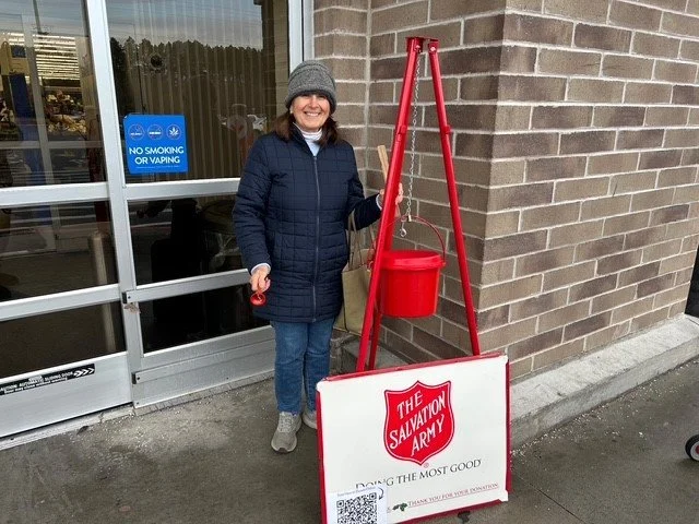 Lower Right: Felice Joseph ringing bell in support of the Salvation Army. 12.6.25